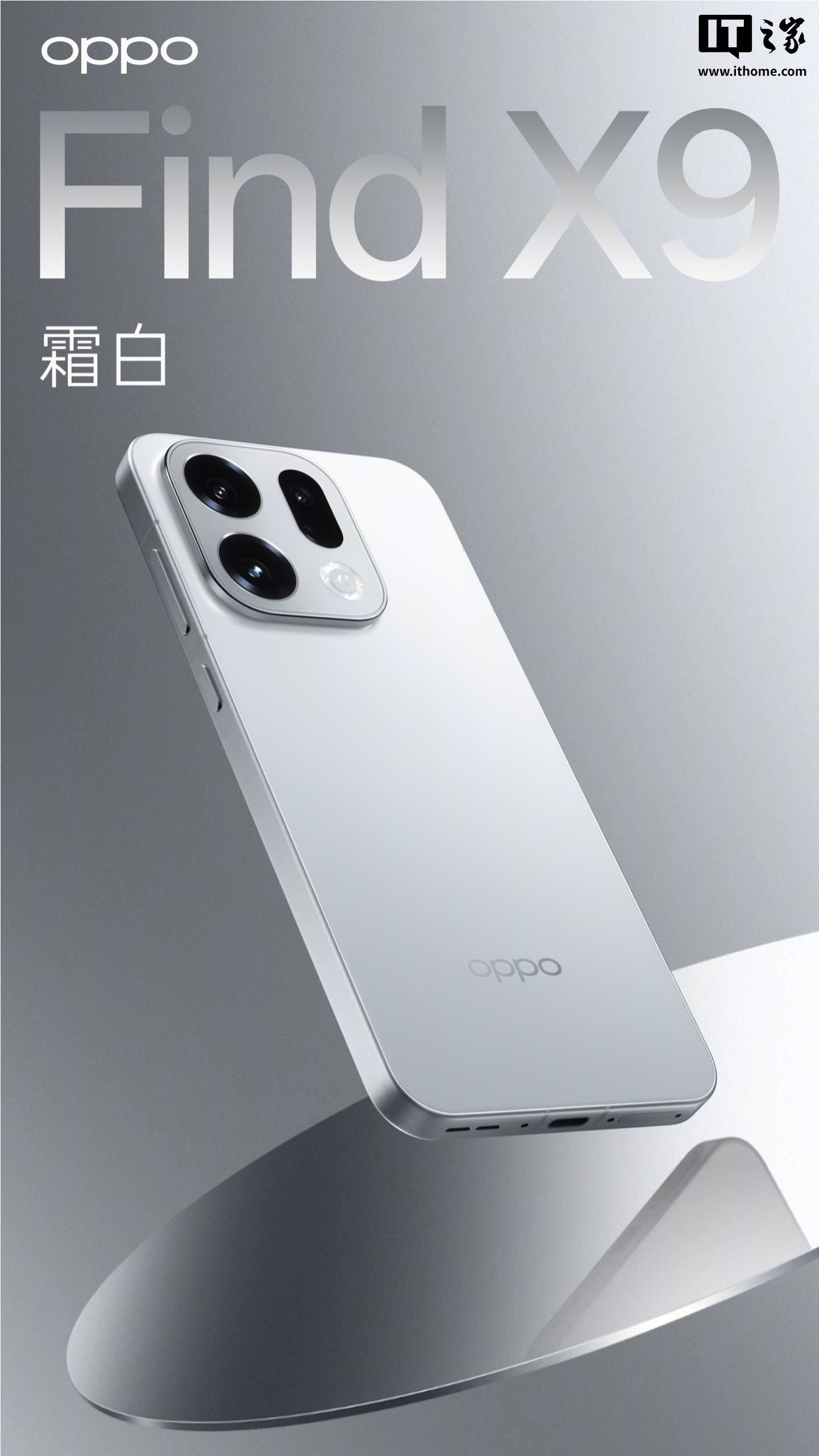 全新「绒砂工艺」冷雕工艺6.59 / 6.78 英寸黄金握持尺寸全系直屏极窄四等边 + 首发「全场景 1nit 明眸护眼屏」全系搭载了哈苏四摄影像系统全系配备 7000+mAh 超大电量冰川电池(标准版 7025mAh、Pro 版 7500mAh)全系 5 款全新配色:Find X9 绒光钛、霜白、雾黑;Find X9 Pro 绒砂钛、霜白;还有一款“半遮面”的特别色