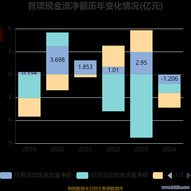 截至2024年,公司经营活动现金流净额为-1.21亿元,同比减少4.16亿元;筹资活动现金流净额-1.92亿元海陆证券,同比减少4.76亿元;投资活动现金流净额-1.22亿元,上年同期为-8.27亿元。